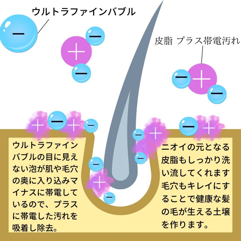 先日勉強会で某メーカーさんの頭皮と髪の残留物を綺麗に洗い流せるバブル発生装置を